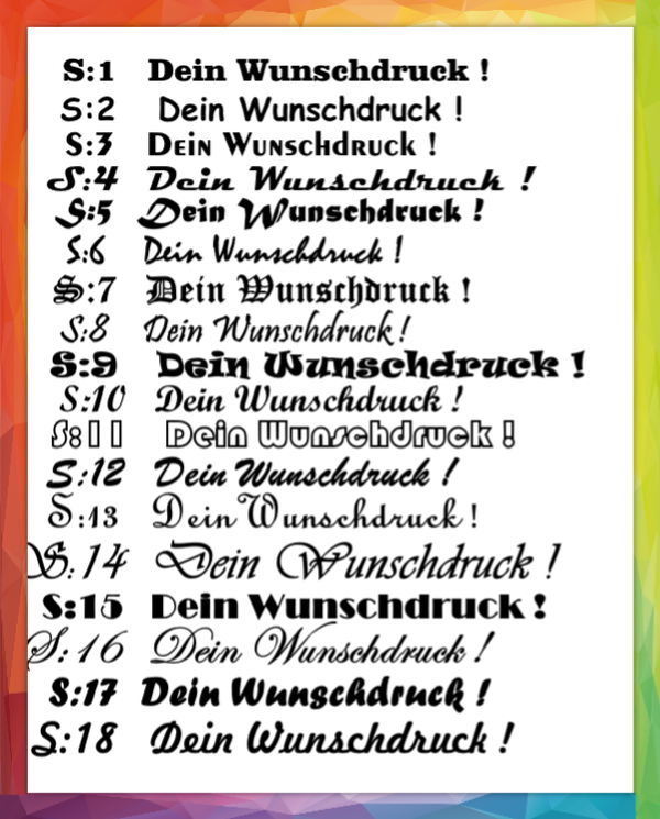 Spruch , Name ....was für ein Druck solls sein ?